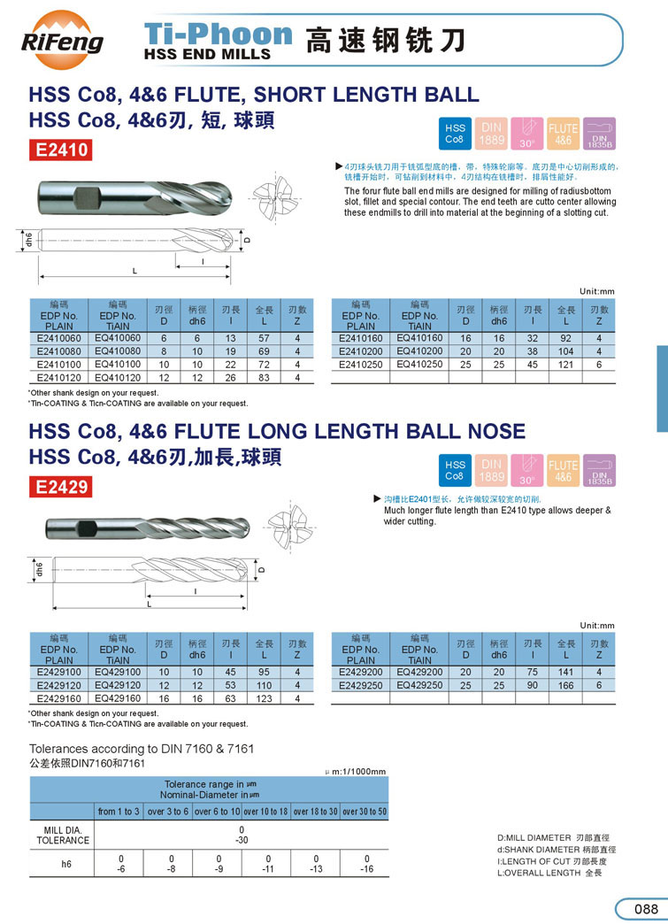 6. 2刃球型白鋼銑刀087