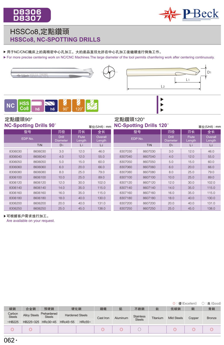 1. NC 90度定點鑽 HSS CO