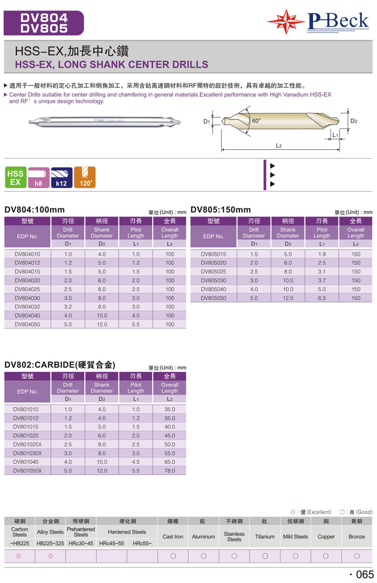 加長(zhǎng)柄高速鋼中心鑽065
