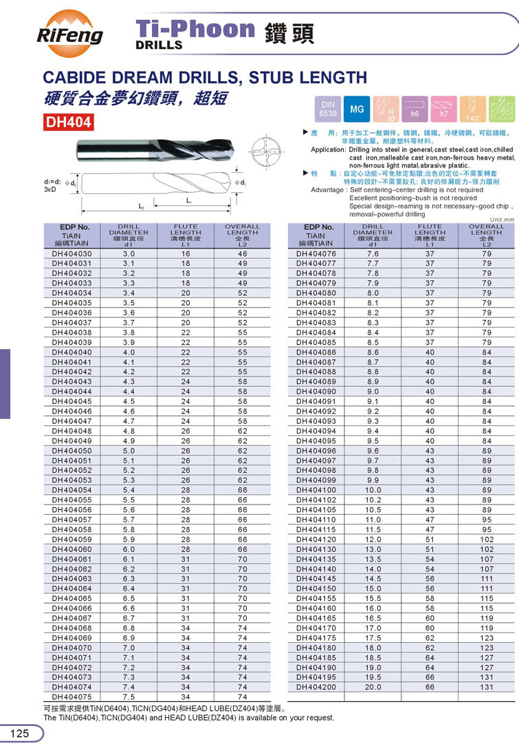 10. CARBIDE高硬度鎢鋼鑽頭125