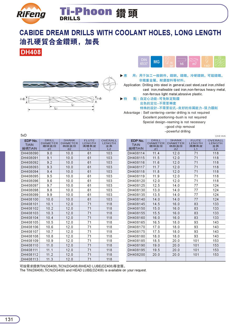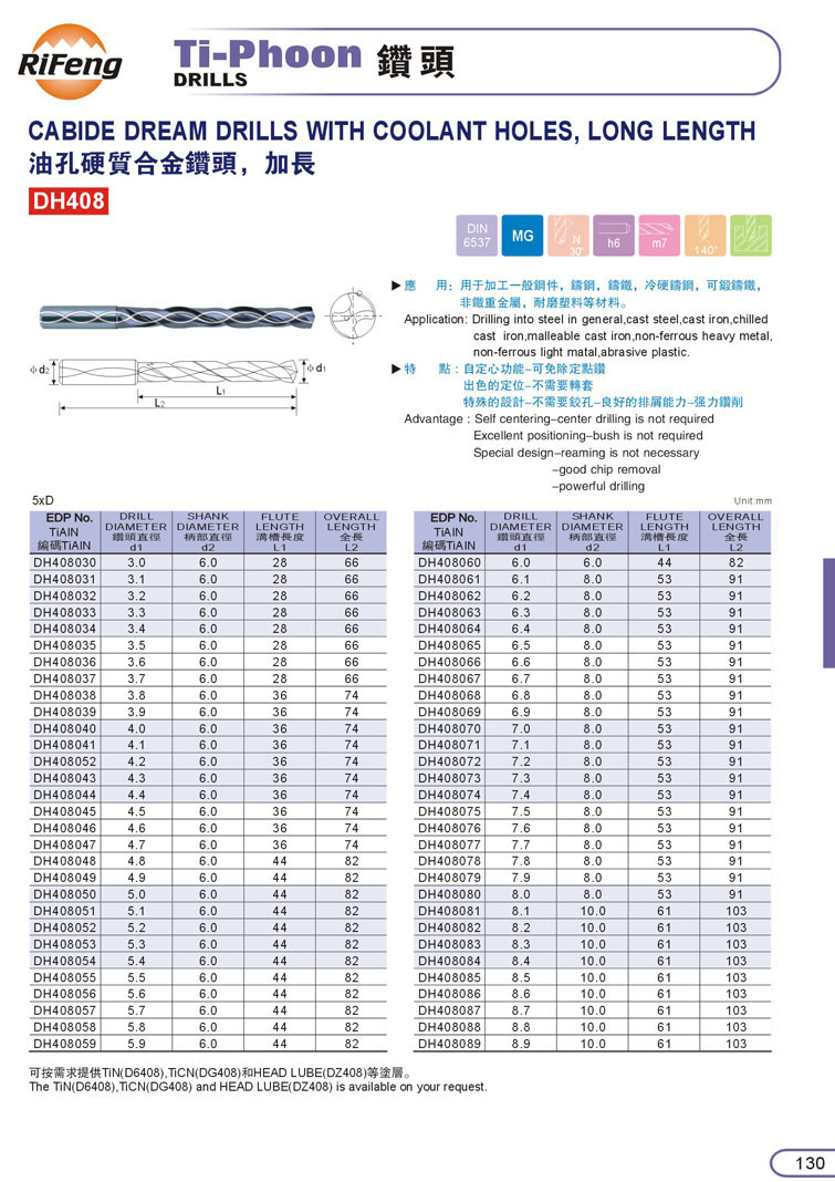 14. CARBIDE高硬度中心出水8D鎢鋼鑽頭132