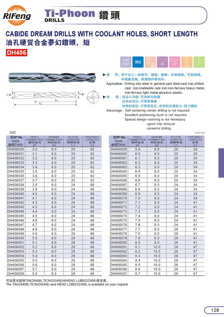 13. CARBIDE高硬度中心出水5D鎢鋼鑽頭128