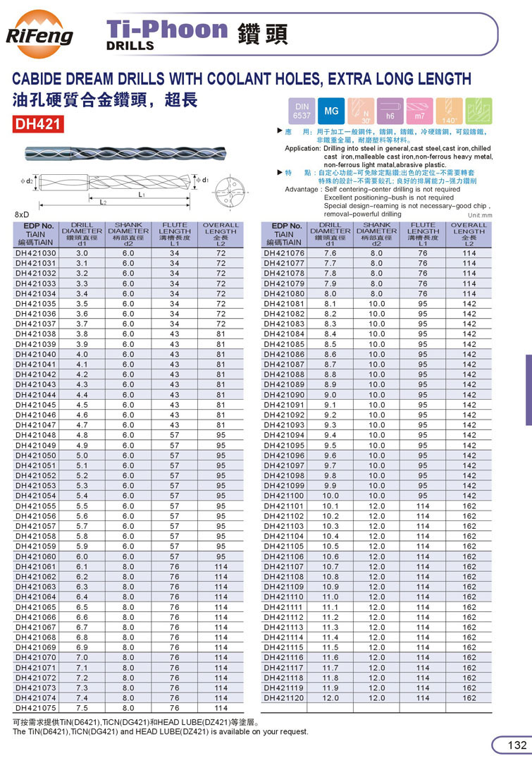 14. CARBIDE高硬度中心出水8D鎢鋼鑽頭132