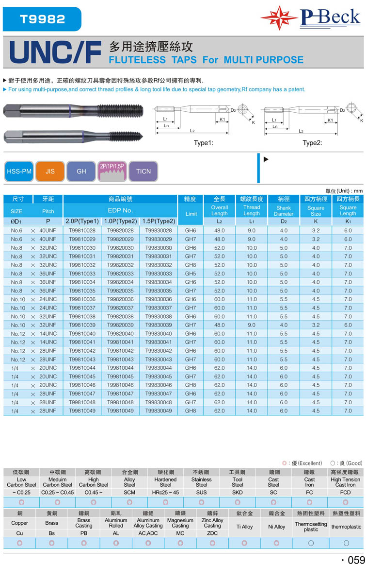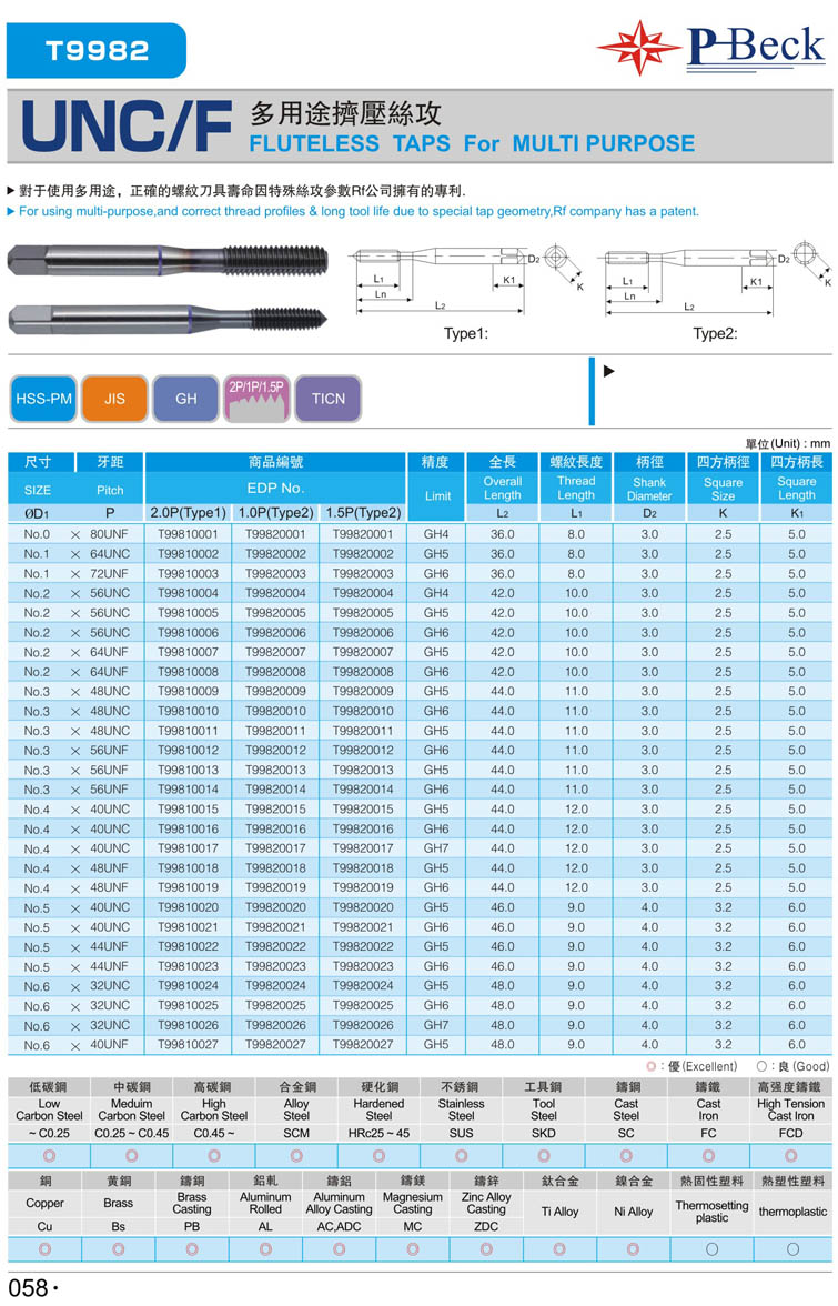 8. 公制螺旋銅專用絲攻016