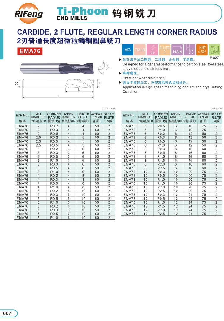 7. 2刃超微粒圓鼻鎢鋼立銑刀007