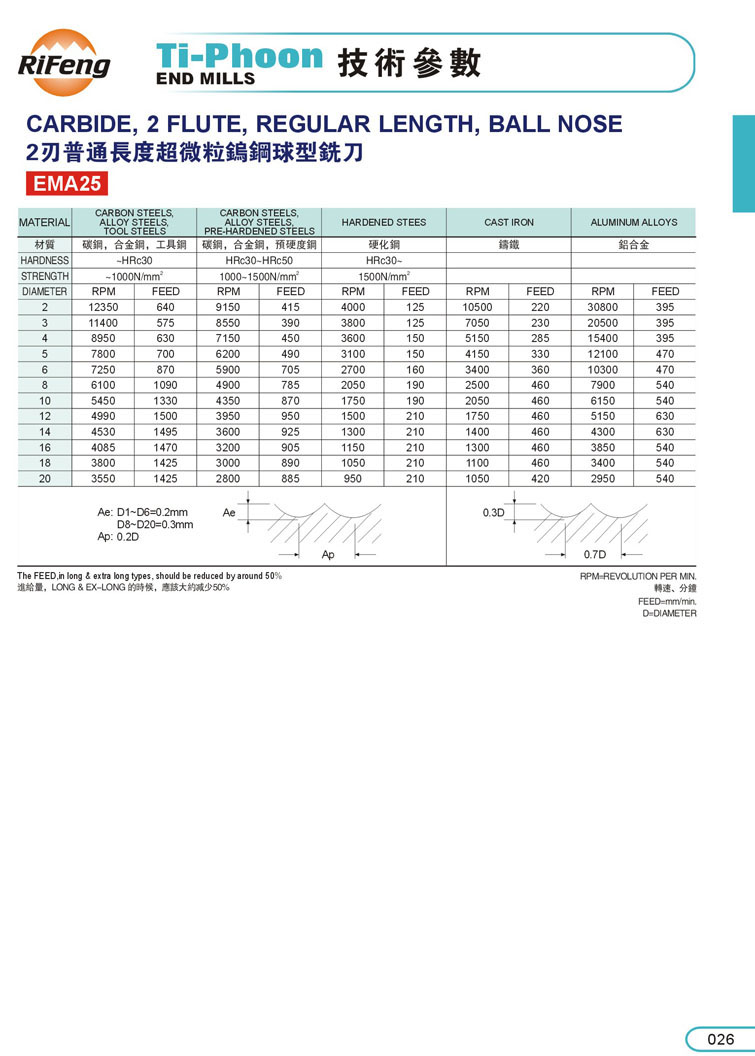 12. 2刃球型超微粒鎢鋼深溝立銑刀012